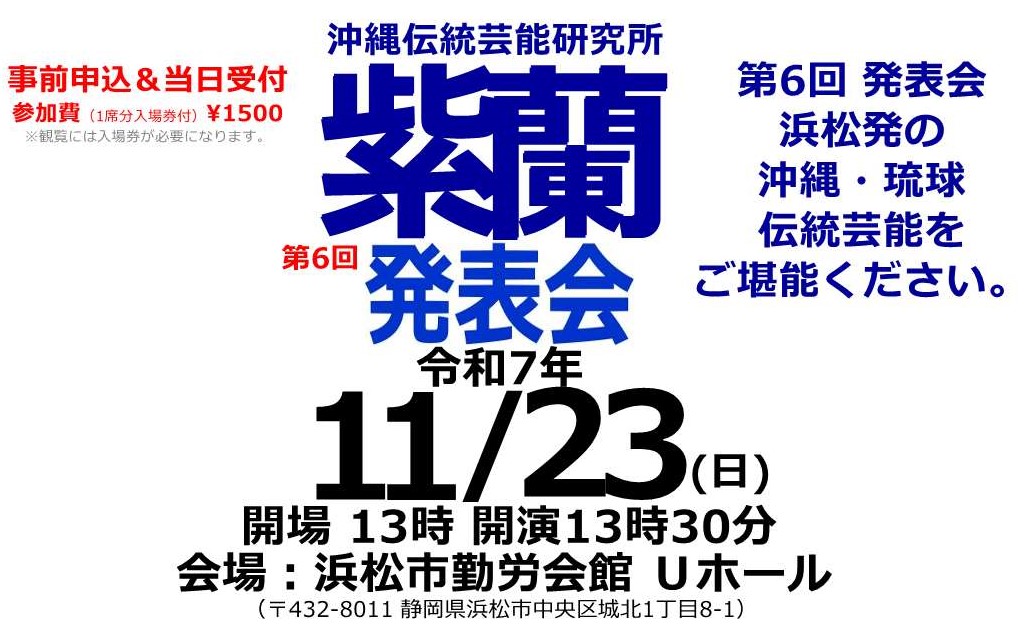 2025年 沖縄伝統芸能研究所 紫蘭「第6回 発表会」 事前ご予約の御案内 |